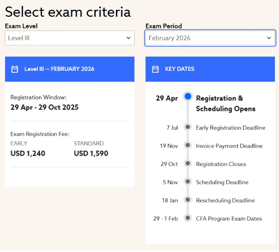 2026年2月CFA考试将涵盖一级与三级考试,考试窗口期如下: