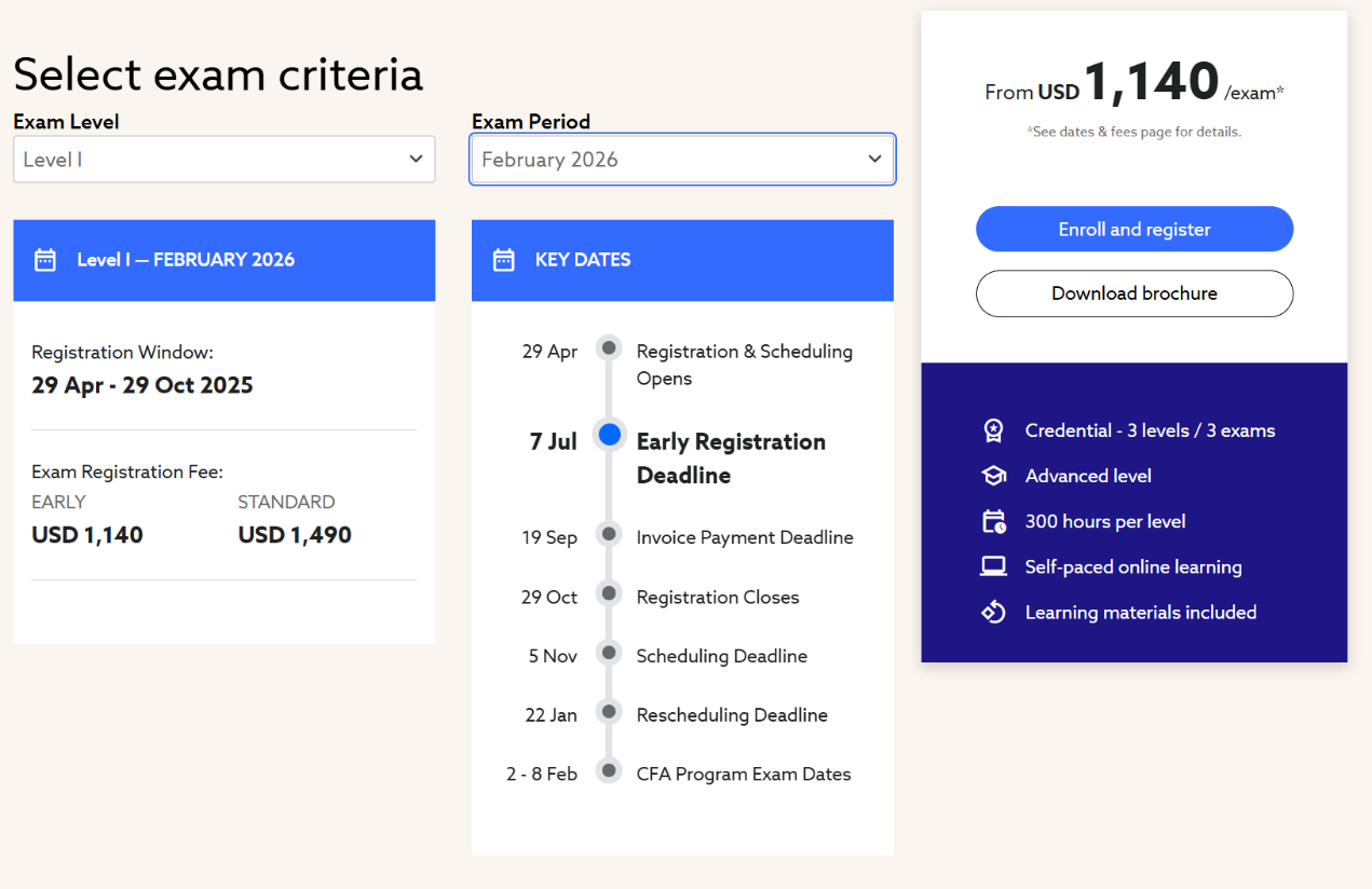 如果是想要报名参加2026年2月CFA考试的同学,现在还可以享受早鸟报名价格,早鸟价报名(减免300美元)将于2025年7月7日截止!