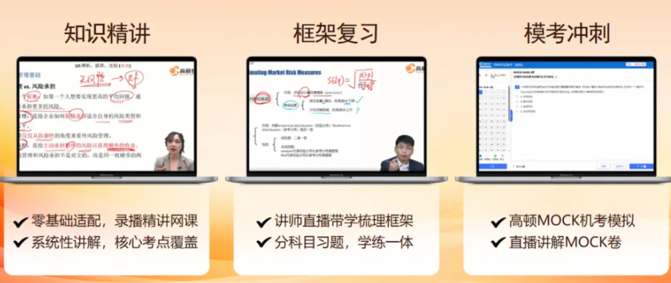 以全行业销量的FRM一级中文教材为依托进行中文课程的研发,突显高顿FRM中文培训课程独特的教研优势。