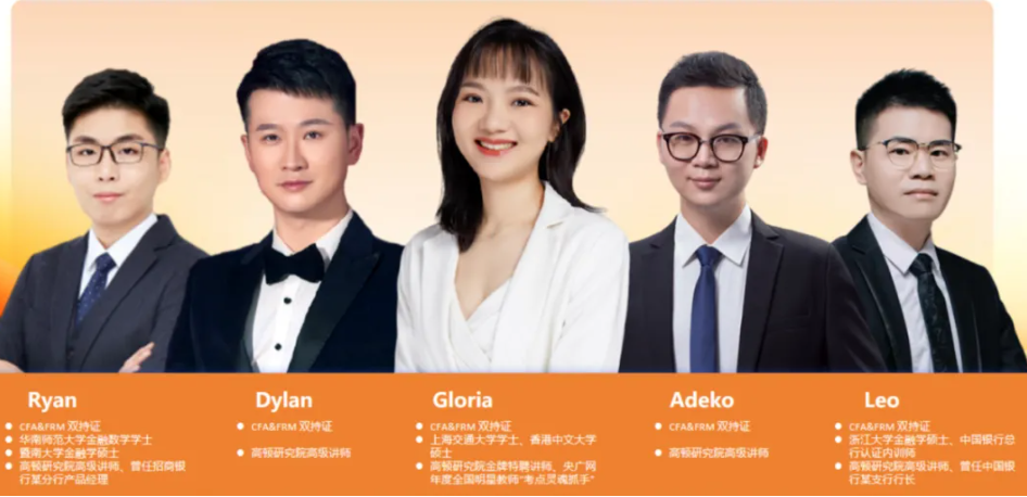 中文课程由英文课程原班教学教研团队进行研发、录制,所有老师均为高顿全职授课老师,具备多年FRM专业教学经验且CFA&FRM双持证。