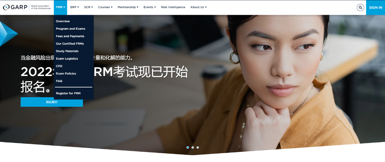1.进入官网:www.garp.org,官网最上面有个FRM选项,鼠标放在FRM选项上不要点