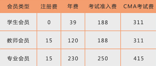 要想报考CMA考试,首先需要注册成为IMA会员,IMA会员分为专业会员、教师会员、学生会员三种,不同的会员所缴纳的各项费用也是不同的,详情如下: