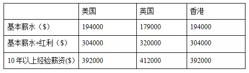 而关于CFA持证人的薪资,虽然和工作经验等其他因素有关,但有数据表明,全球CFA持证人的平均薪资已经达到了17.8万美元,而在美国、英国、香港等地CFA持证人的薪资更是非常可观。