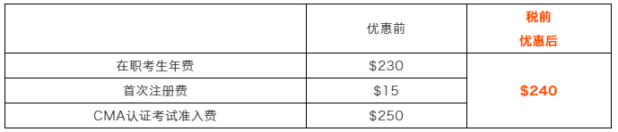 优惠幅度:购买在职考生年费及考试准入费礼包,享受五折优惠、免除15美金手续费