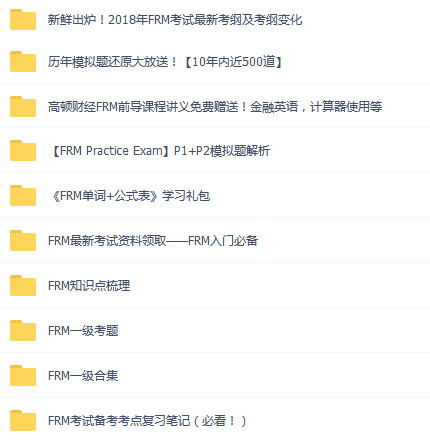 给大家整理了一套电子版FRM备考资料,里面有很多FRM资料可供大家选择。而且在对于考生来说,电子版很适合随时查阅:【电子版FRM备考资料】