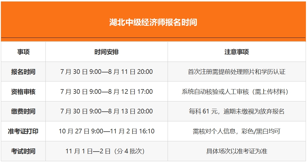 湖北省人事考试网发布公告,2025年中级经济师考试报名将于7月30日9:00到8月11日20:00开始报名,缴费截止时间为8月13日20:00,考试时间定于11月1日—2日,现在的开始都采用机考。