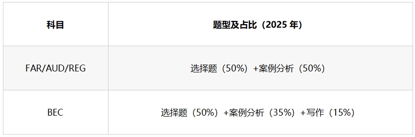 FAR/AUD/REG:主攻选择题高频考点(如GAAP准则、审计流程、税法条款),搭配案例分析实战训练。