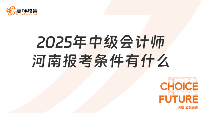2025年中级会计师河南报考条件有什么?2025年中级会计师河南报考条件包括基本条件、学历和工作年限要求,高顿中级会计小编将为您详细解答。
