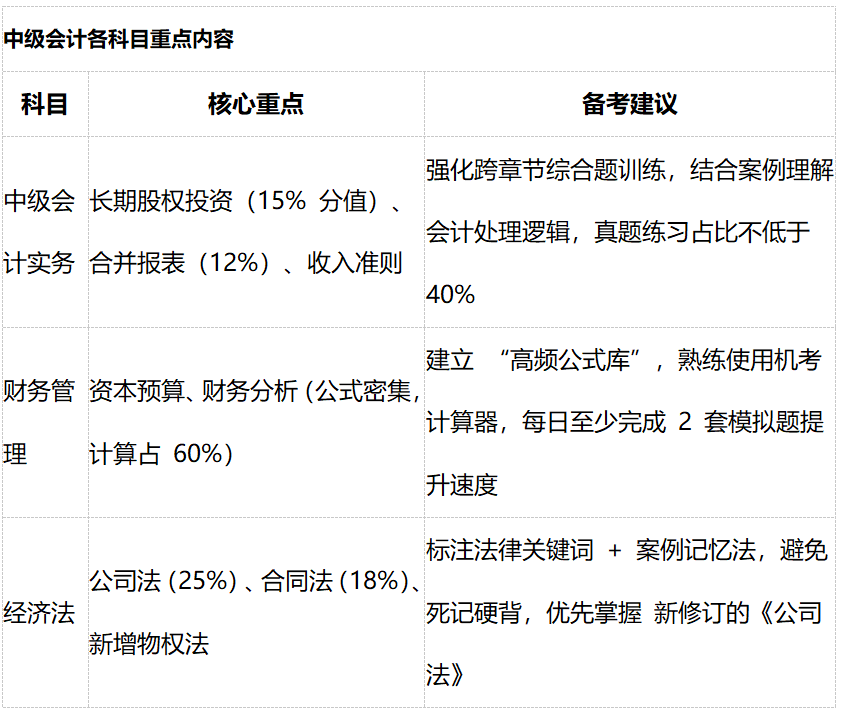 中级会计各科目难度与复习策略差异显著,需针对性突破: