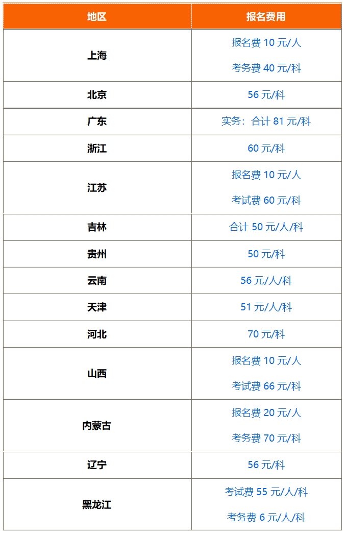 2025年中级会计师报名费用每科大概50-80元,三科总费用约150-240元(如北京60元/科,上海75元/科),各地区有区别,具体如下表所示: