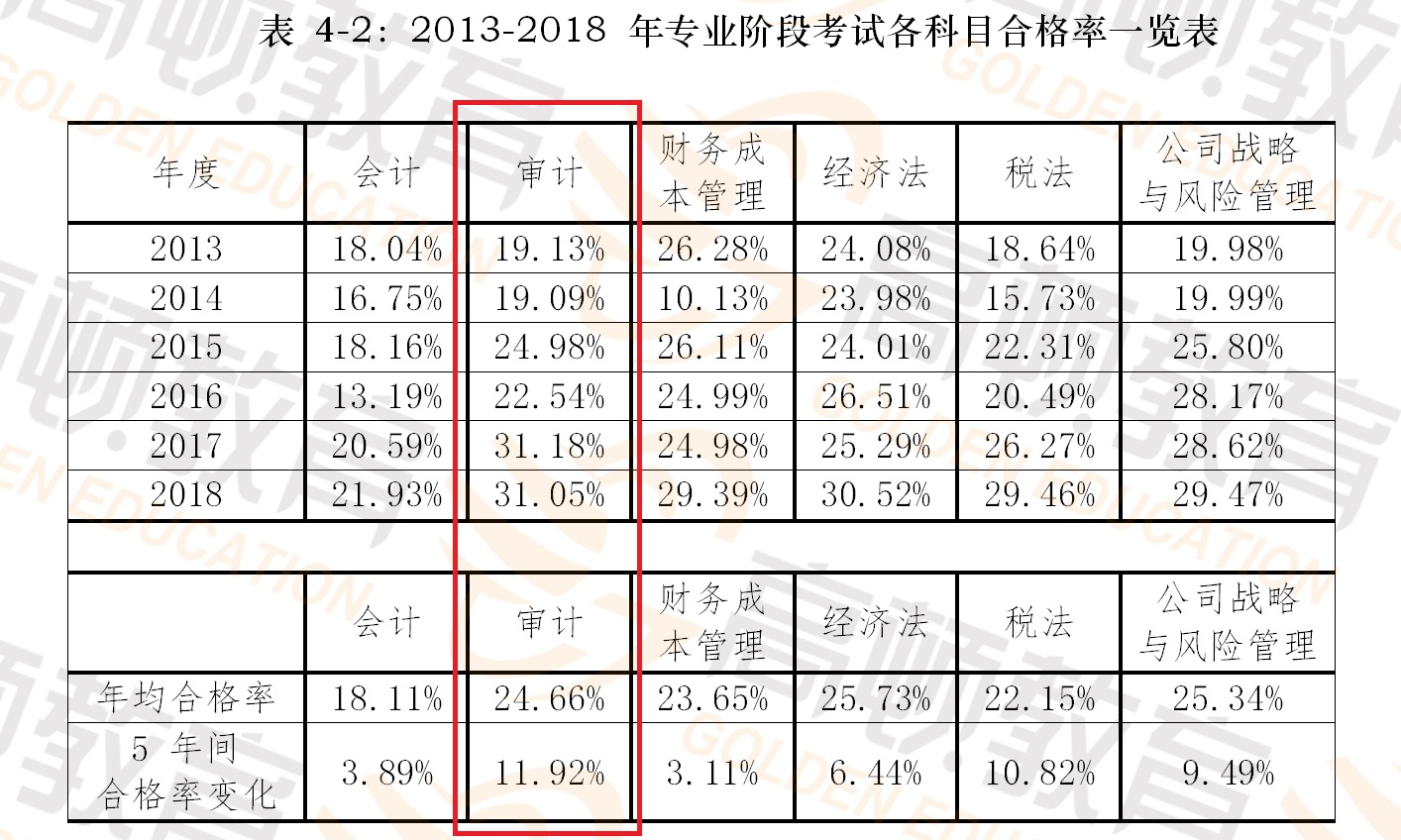 一、CPA《审计》科目通过率