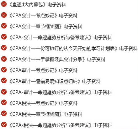 备考注册会计师的兄弟们,老铁来啦!为大家准备了一份厚厚的资料,附带备考注册会计师的老铁们,小编为大家准备了一份厚厚的资料,附带:2020版CPA思维导图、各类考生学习攻略、1-4科超省时搭配方案、CPA网课精华版、助攻辅导书。点击这里获取资料:【CPA资料包地址】