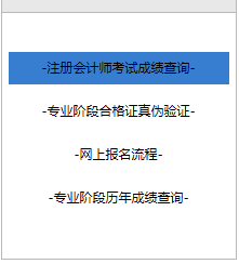 今年查询成绩时间大概是在12月20日,登录注册会计师全国统一考试网上报名系统找到左侧导航栏中的“注册会计师考试成绩查询”点击进入,如下图所示:根据指引输入查询考生的姓名及身份证号码即可。