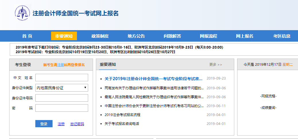 2、“注册会计师全国统一考试网上报名系统”:<http://cpaexam.cicpa.org.cn/>