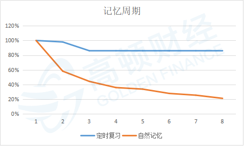 学霸们的备考战线还是比较长的,那么问题来了,备考战线拉长,学习的知识点还能记住吗?根据艾宾浩斯记忆法的研究成果,知识点在一个月之后,自然记忆只能保留20%。我们看一张定时复习与自然记忆的对比图:
