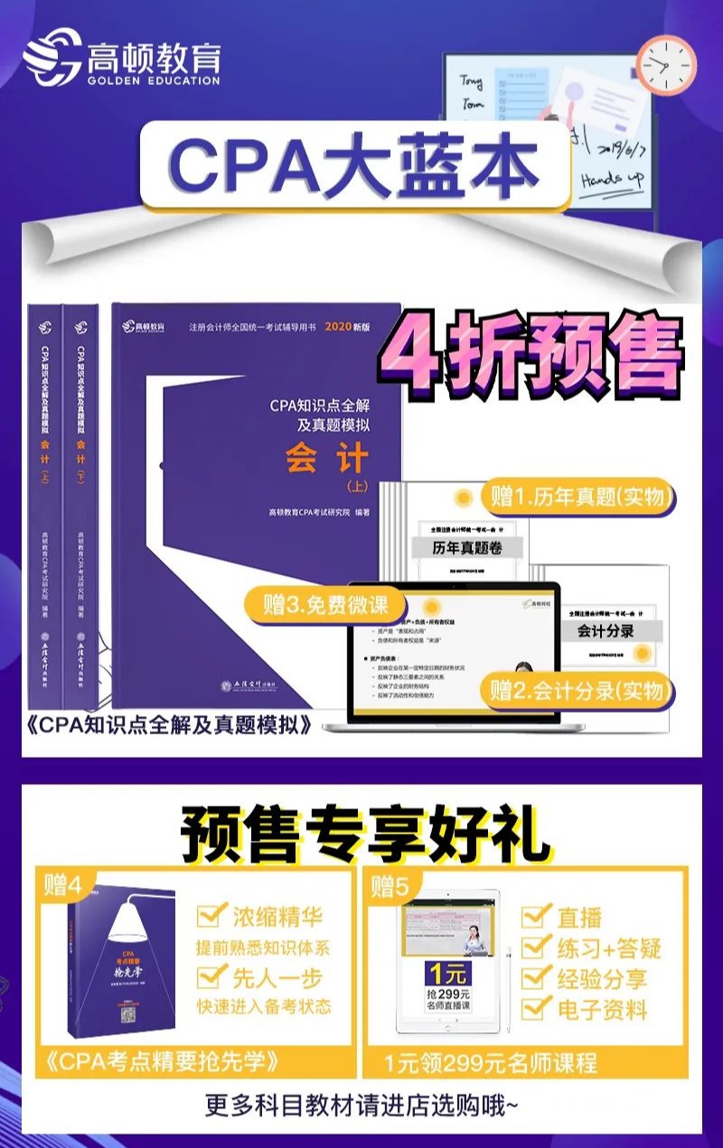 好用易懂,颜值高的CPA大蓝本预计4月份与大家见面,在那之前,大家“有的忙”,需要先知己知彼,留意报考时间和操作步骤,了解报考科目相关须知和硬核方法,甚至抢先学习一些内容。