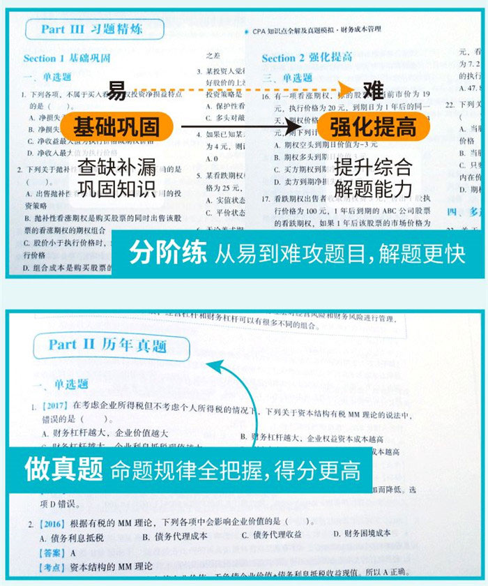 在调研完上百款市面国内外优质的教辅书并沟通不下40家印厂之后,我们确认了“用锁线裸脊的装帧形式,可180度平铺阅读,书写自由、好看好写”的最终方案,希望给备考CPA的你在漫长艰辛的路上增添一份欣喜。
