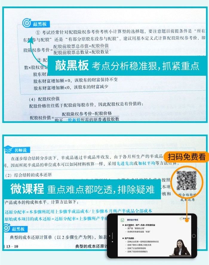 另外,在使用CPA大蓝本的时候,还可以通过扫码看我们为你录制的重难点讲解视频,做近3年的真题册。