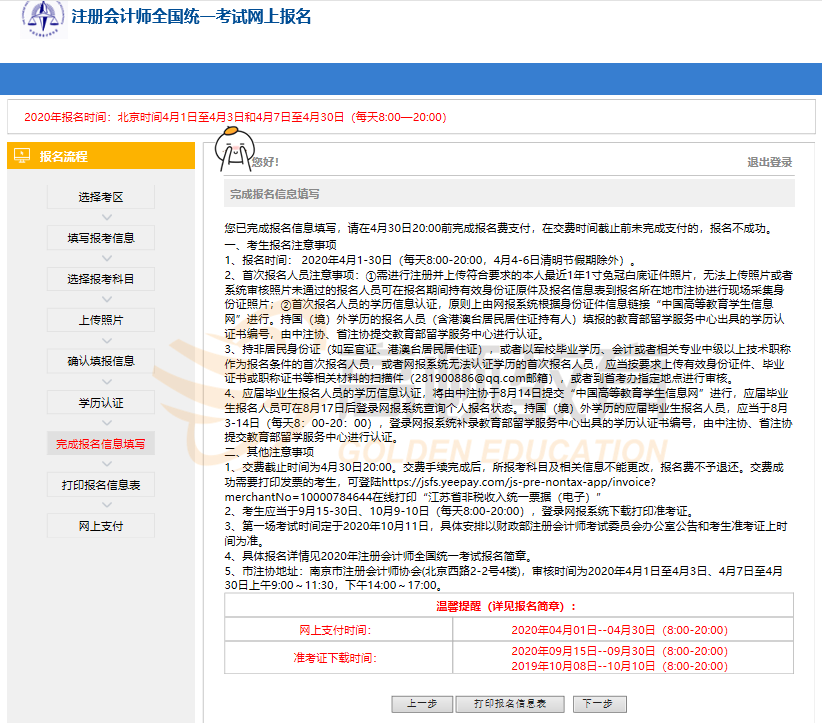 2020年首次报考cpa流程以及注意事项详解!附图!