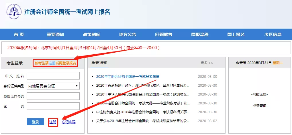 考生须登录“注册会计师全国统一考试网上报名系统(https://cpaexam.cicpa.org.cn)”进行报名。