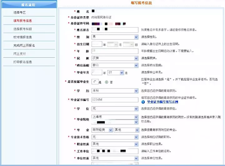 考生应根据考试要求,如实填写报名所需信息(应届毕业生与非应届毕业生需填写的信息不同)。