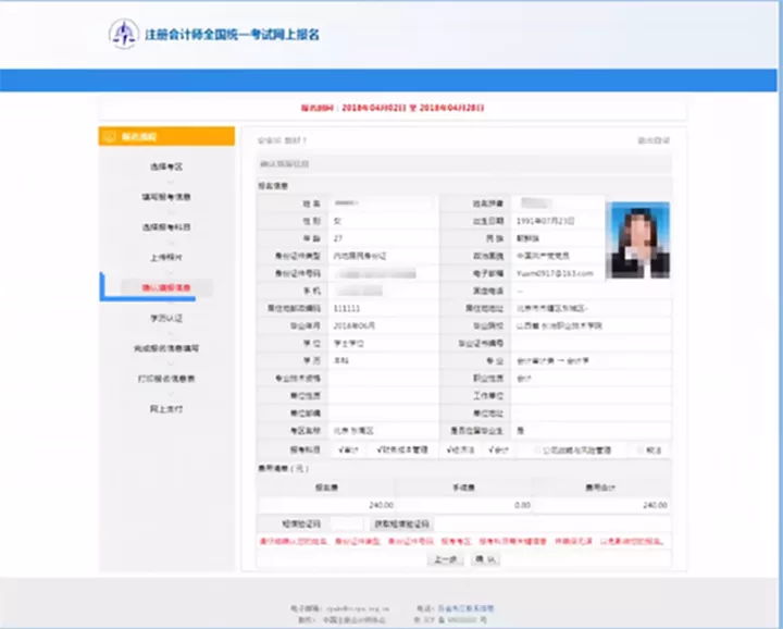 考生需对姓名、身份证类型及号码、报考考区、考试科目等关进信息进行核对,确保信息无误。