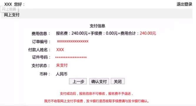 1. 完成报名资格审核的报名人员,以及无需进行资格审核的报名人员、应届毕业生报名人员在报名信息填写完成后,通过网上支付交纳考试报名费。交费完成视为报名程序完成。