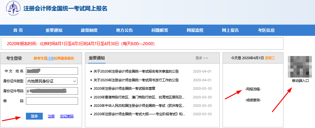 首次报考注册会计师的考生,要先打开“注册会计师全国统一考试网上报名系统”进行注册自己的账号,注册时需要用到身份证号、手机,这些务必提前准备考好,注册的页面如下图所示: