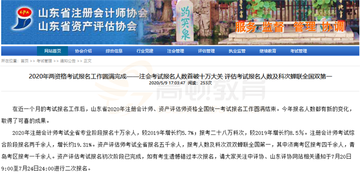 在近一个月的考试报名工作后,山东省2020年注册会计师、资产评估师资格全国统一考试报名工作圆满结束。今年报名人数都有新的变化,取得了可喜的成果。