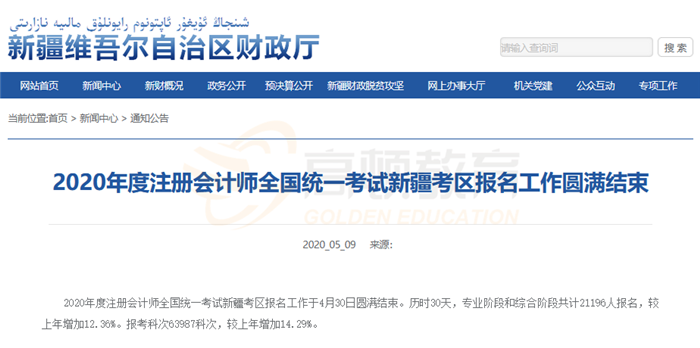 2020注册会计师考试新疆考区报名人数共计21196人!增长12.36%!
