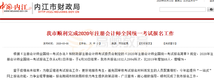 2020年注册会计师全国统一考试报名工作于4月30日结束了,注册会计师考试四川考区报名人数也逐步公布出来,内江市注会报名情况如下!