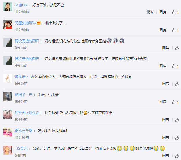 有考生抽到卷子,没有传说中的重要考点“长投的抵消分录和租赁”,不管对不对,反正都写完了!