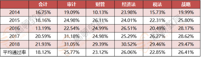 可以看出,注会报名人数逐年增长,专业阶段考试通过率,却没有那么乐观,以下是专业阶段考试历年通过率: