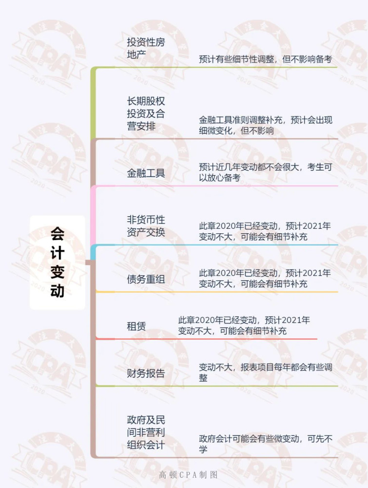 以上是关于2021注会考试中注协的安排,这是报考内容上的变化,那各科目学习的变化情况如何呢?