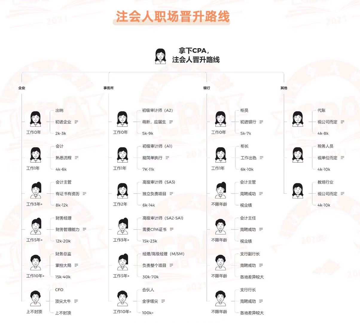而CPA 考试则是能把学历往身后一放,证书的含金量高,隐隐有着“财会第一证”的美称,如果考生想往财会和金融领域发展,CPA证书无疑是不二之选。考下CPA证书后,考生可以选择执业或者非执业,执业一般会进入四大审计会计师事务所工作,非执业一般会进入大型企业从事财务管理工作,执业发展方向广阔。
