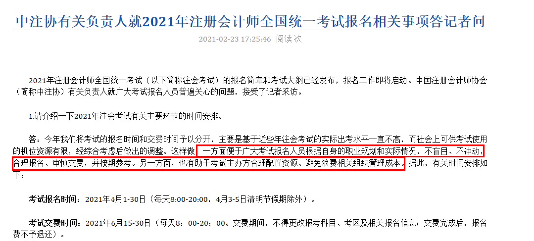 报名时间和交费时间间隔两个月的时间,中注协这么解释: