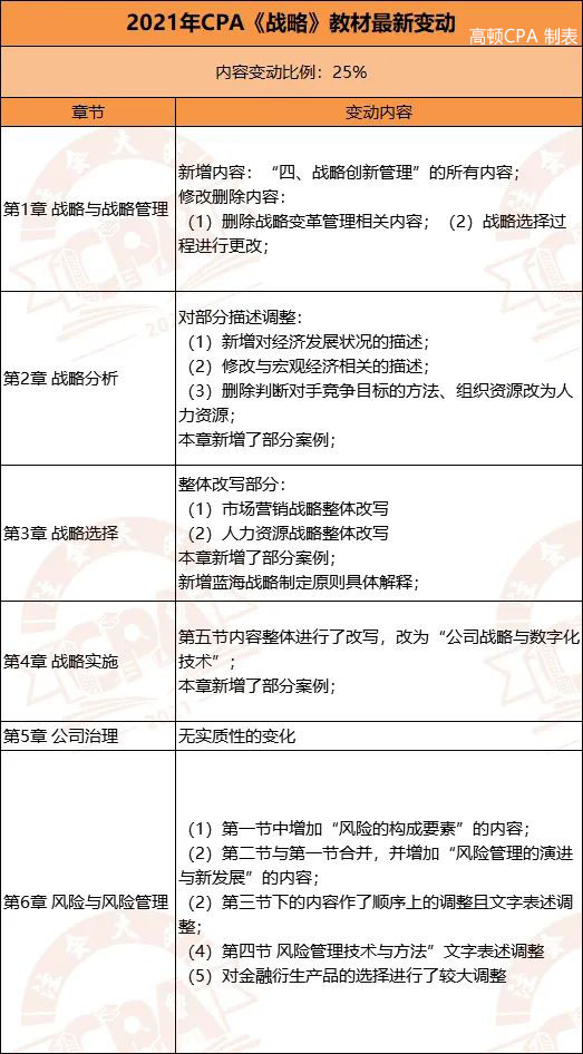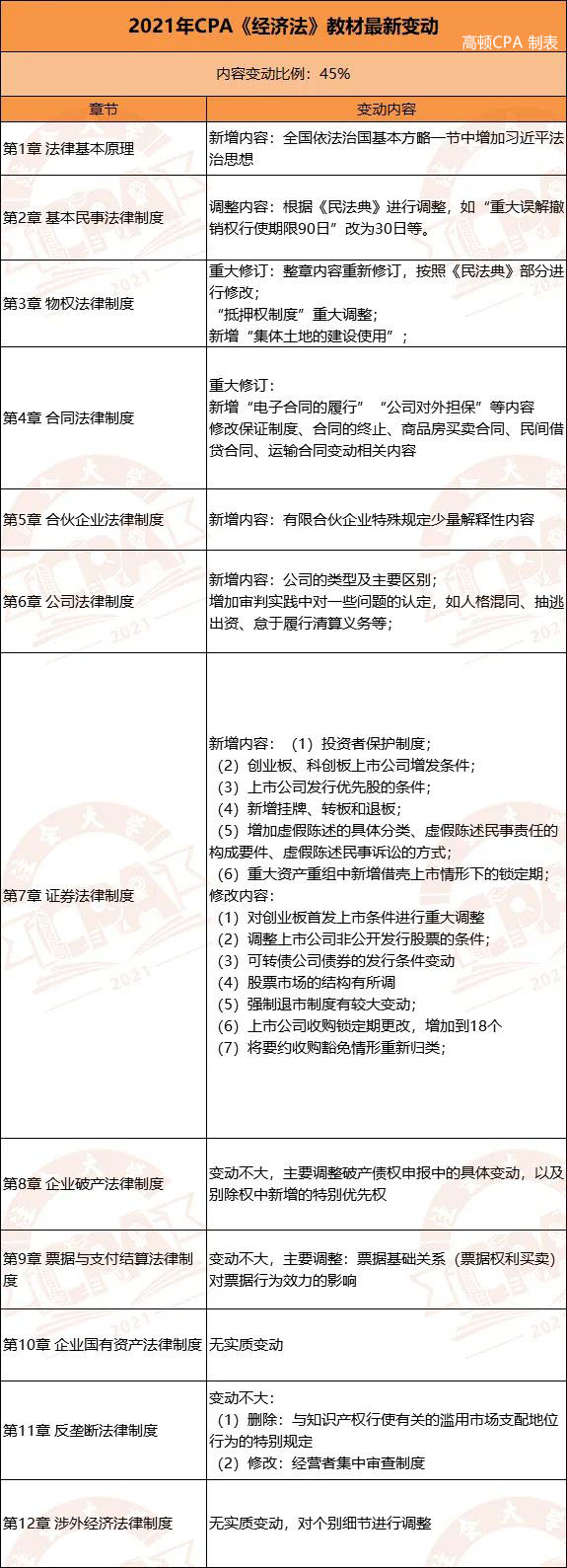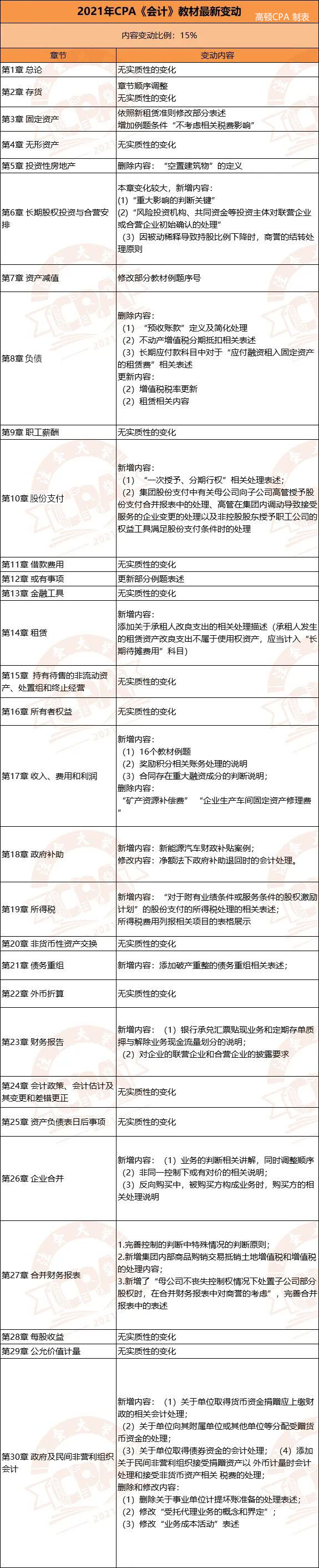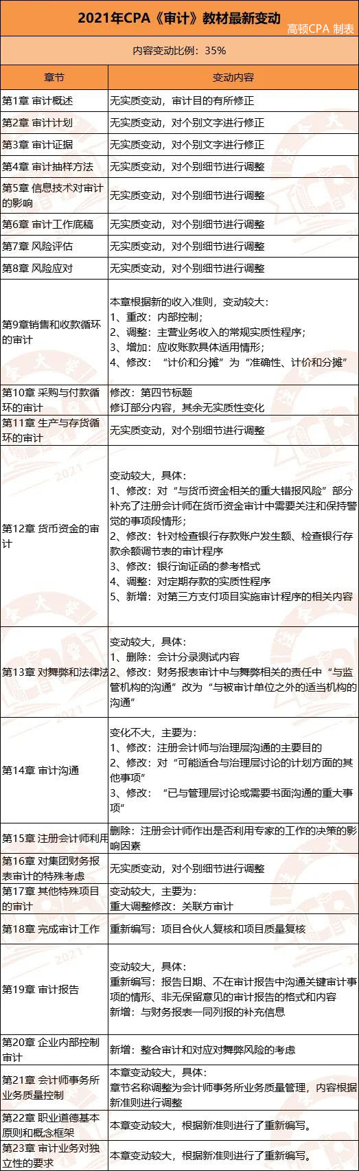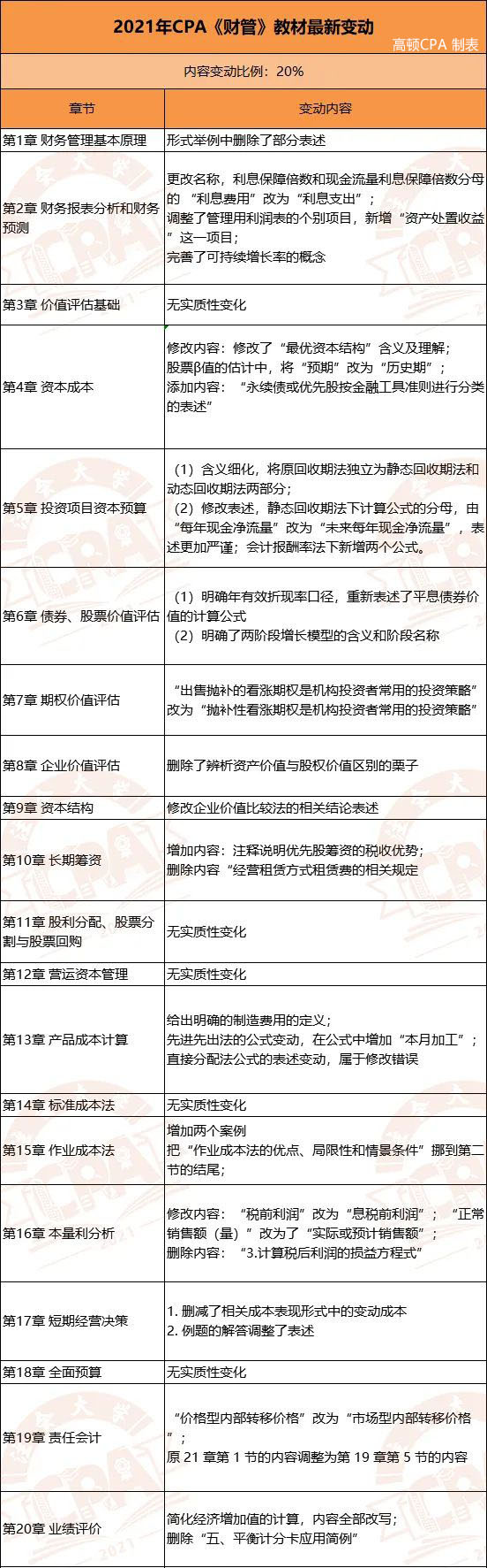 注会教材是出来了,但注会考生最关心的事情还在于内容变动,高顿CPA小编已经加班加点赶制出来了。可供各位考生参考书使用。