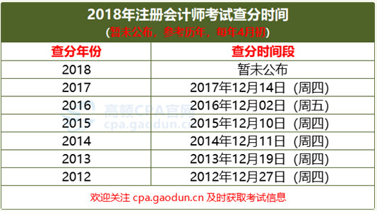 等待成绩公布的日子是非常漫长的,2018年注册会计师考试成绩公布时间具体如下: