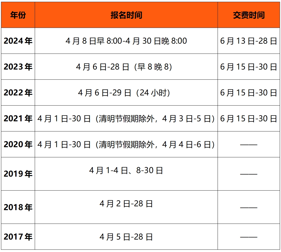 4月份!注册会计证报名一年一次,报名时间通常是每年的4月份,例如:2024年注册会计证考试报名时间是4月8日早8:00-4月30日晚8:00。历年注册会计证报名时间如下表所示: