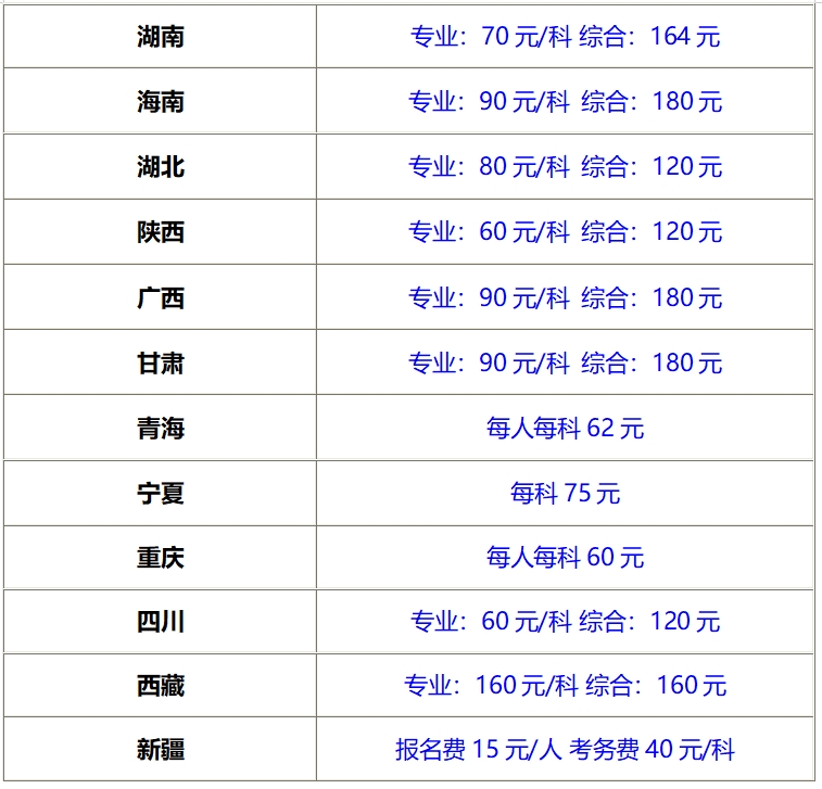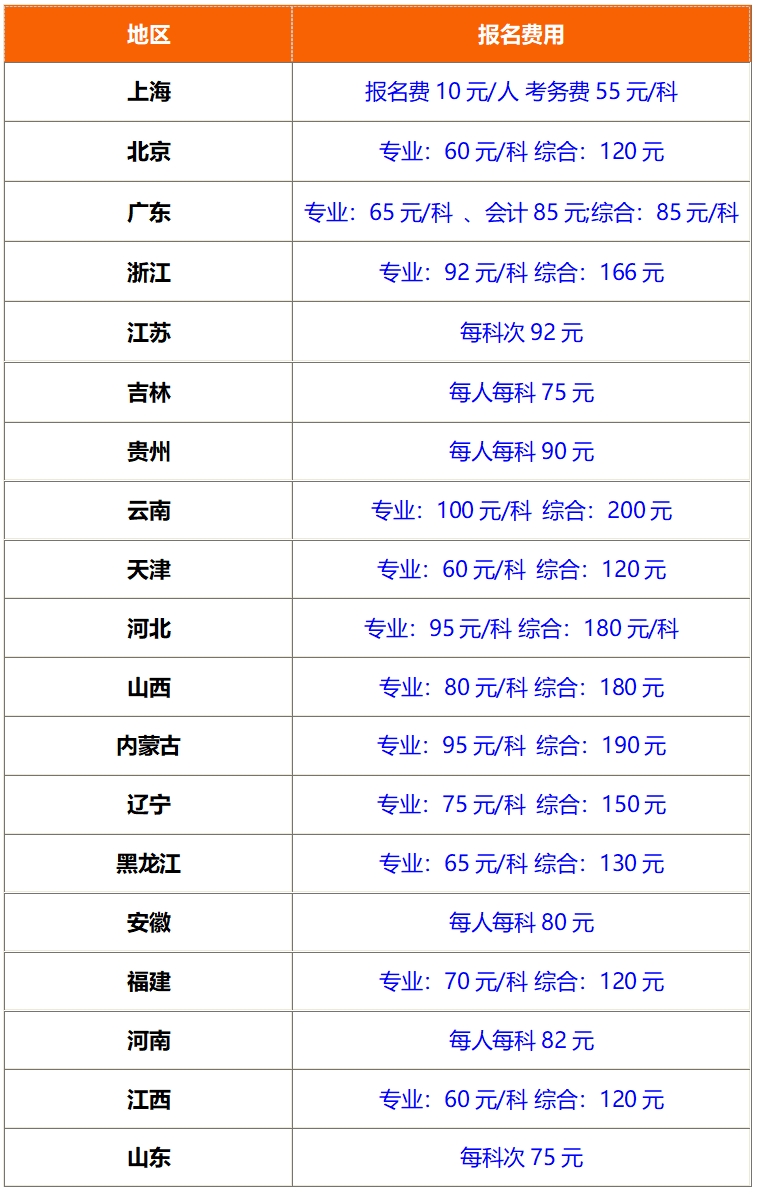 cpa收费标准由各省财政厅制定,差异较大,专业阶段单科费用约50-100元(如北京60元/科,上海55元/科),综合阶段单科费用在80-180元左右(如广东170元两科),详情如下表所示: